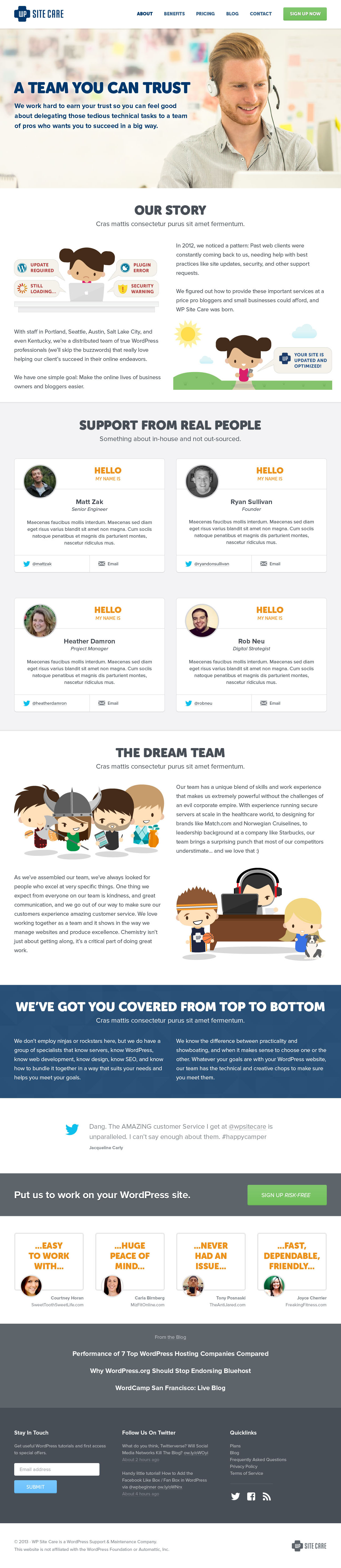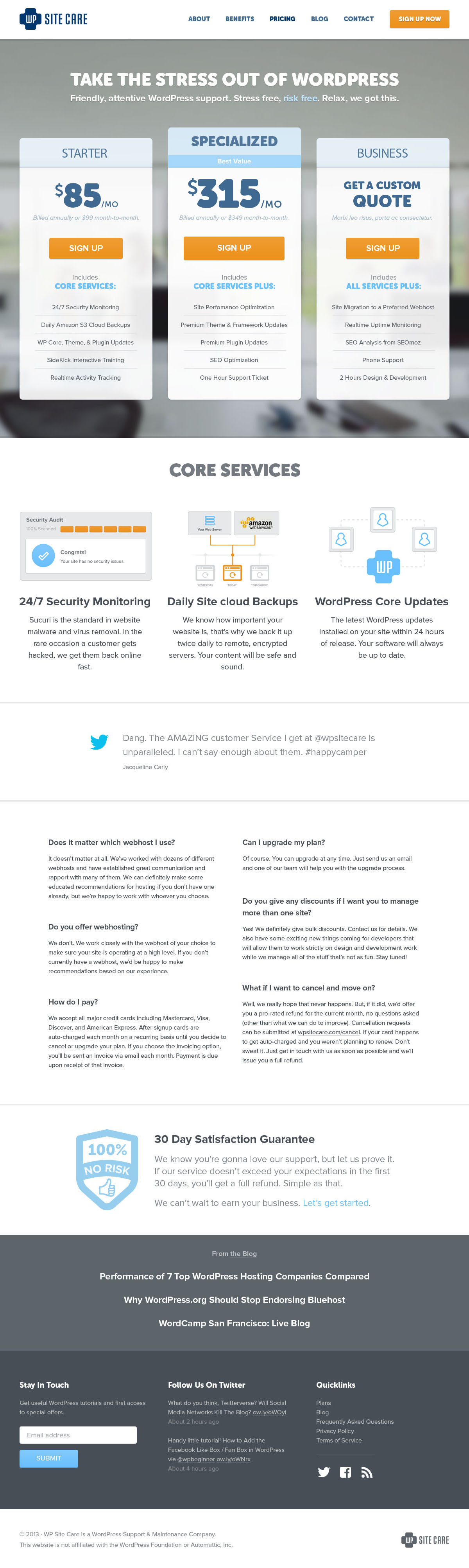 Design, Development, WordPress Website Designed, redesigned and developed various pages on the WP Site Care website. Home Page About Page Plans Page Exposure Theme Page